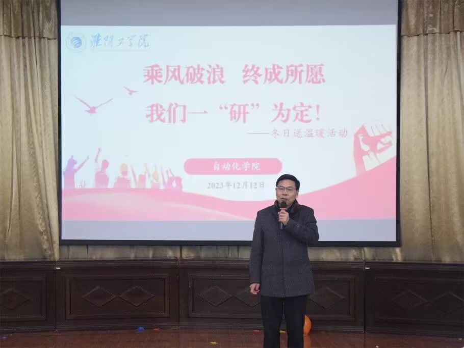 为进一步提升考研同学信心和决心,感受学院关怀与温暖,让同学们在备考过程中保持积极的心态,全力以赴追求自己的梦想,自动化学院于南苑图书馆报告厅开展“乘风破浪 终成所愿”考研慰问冬日送温暖活动。参加本次活动的有学院党委书记孙全平、副书记杨晶、毕业班班主任和全体考研学生,本次活动由杨晶主持。
