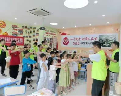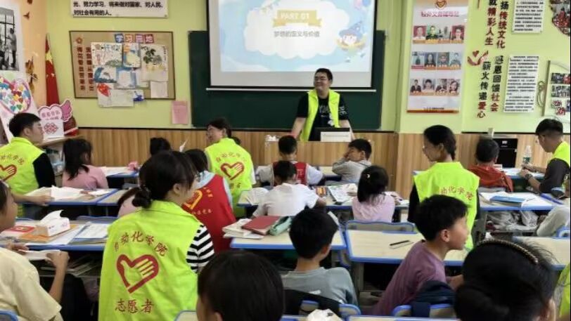 为深入学习宣传贯彻习近平新时代中国特色社会主义思想和党的二十大精神,切实加强对农村留守儿童、寄宿儿童、困境儿童等少年儿童群体的关心关爱,自动化学院“智”童未来宣讲团来到柳树湾520志愿者爱心联盟,协助开展第十五期“心手相签,助力成长梦”暑期暑托班活动,有效解决困境家庭儿童假期看护照料难等问题。宣讲团围绕思想引领、安全教育、身心成长、文化传承、绿色生活、探索未来、持续关注等内容设计了七个板块的专题,通过演讲、手工、绘画、表演等多种寓教于乐的表现形式为孩子们开设公益课堂竭尽所能为小朋友们带来快乐充实、丰富多彩的暑假体验。