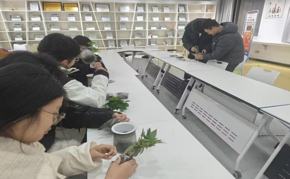 随着小铲子的翻动,一盆盆充满生机的绿植在同学们手中逐渐成型。有人选择生命力顽强的多肉,寄托“坚韧生长”的期许;有人栽种清新雅致的绿萝,象征“平和从容”的心境;更有同学融入创意巧思,给花盆贴上刻有专业术语的贴纸,让“代码”与“绿意”共生,赋予盆栽独特的学科印记。在培土浇水的过程中,浮躁的情绪悄然平复,内心的焦虑慢慢消散,每一盆绿植都成为亲手浇灌的希望载体。