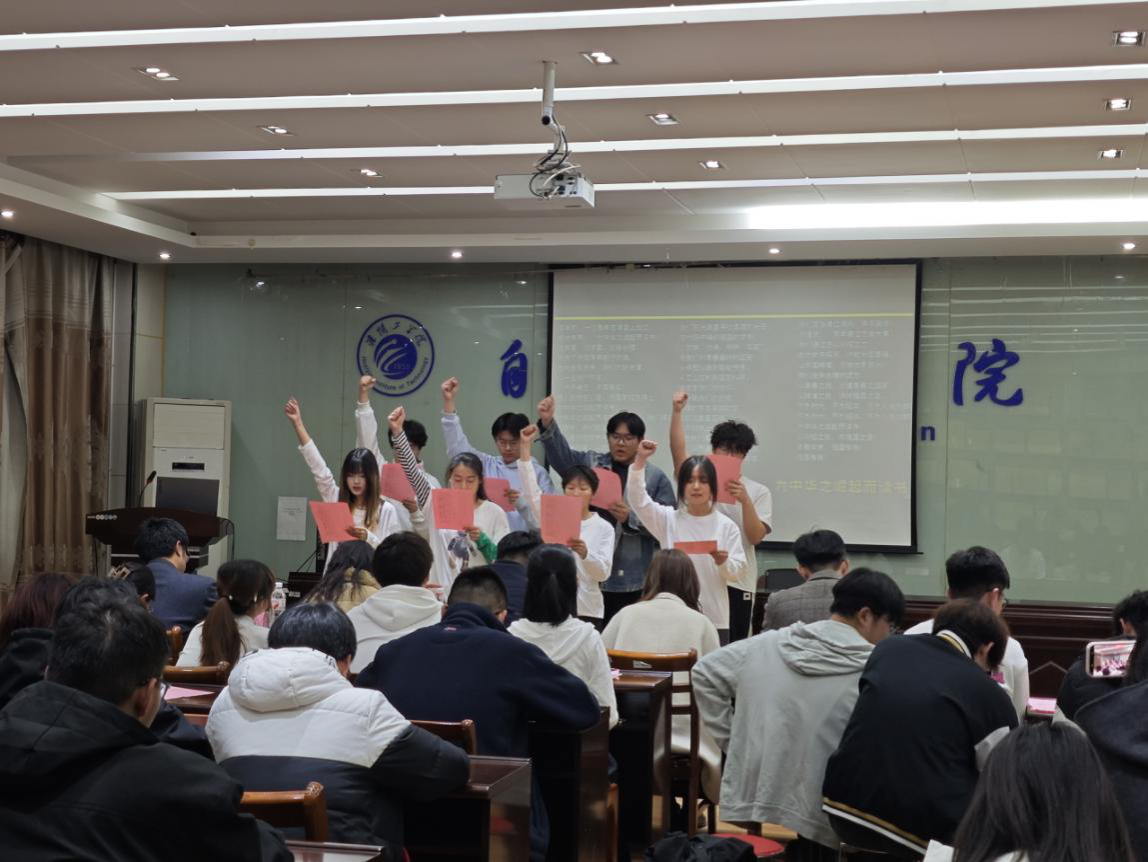 自活动启动以来,大一各班级积极响应,围绕恩来精神中“为中华之崛起而读书”的远大志向、严于律己的修身品格、求真务实的治学态度,结合自动化专业特色与青春奋斗主题,历经数周精心构思与反复打磨,创作出一批兼具思想深度与设计创意的班徽、班训作品,并编排了主题鲜明的朗诵节目。评比现场,各班依次登场,精神饱满、意气风发。