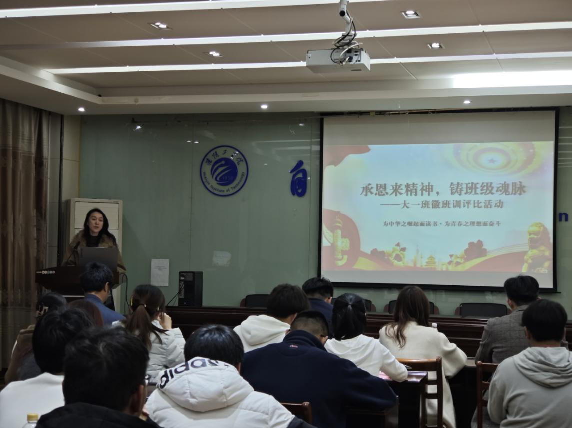 班训阐释与诗歌朗诵环节将活动推向高潮。各班配合悠扬或激昂的背景音乐,用标准流利的发音、饱含深情的语调,逐字逐句传递班训的力量与诗歌的温度。有的班级以“立志、实干、兼容”为班训,将专业学习感悟融入朗诵,表达脚踏实地、践行恩来精神中求真务实品格的坚定决心;有的班级以青春为笔,书写“传承总理精神,践行测控使命”的豪情,用铿锵有力的节奏展现大一新生传承伟人志向、勇担时代重任的精神风貌;还有的班级结合校园生活与专业前景,凝练出“崛起为志,翔宇为范,崇德尚行,笃学精业”的班训,将对集体的热爱、对未来的憧憬融入诗句,真挚的情感打动了在场评委与观众。